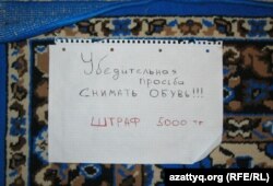 Назарбаев университеті жатақханасындағы "Аяқ киіміңізді шешіңіз" деген өтініш. Астана, 28 қыркүйек