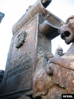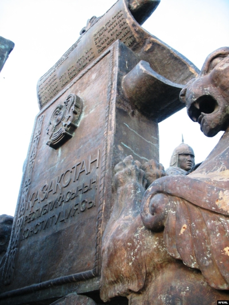 Ашық далада қалған ескерткіште Қазақстан Республикасының Конституциясы да кескінделген. 21 қазан 2009 ж.