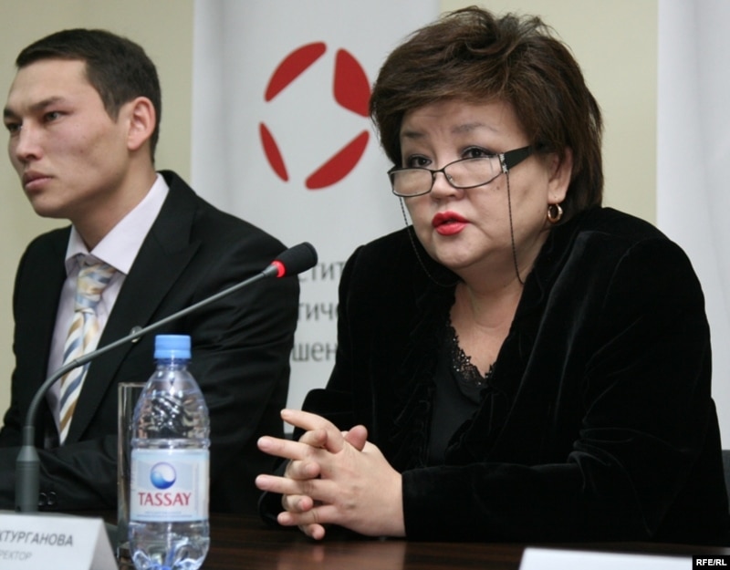 Саяси шешімдер институтының сарапшылары Бақытжамал Бектұрғанова (оң жақта) мен Санжар Боқаев. Алматы, 15 желтоқсан 2009 жыл.