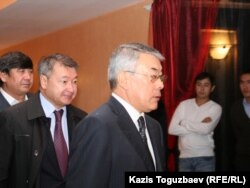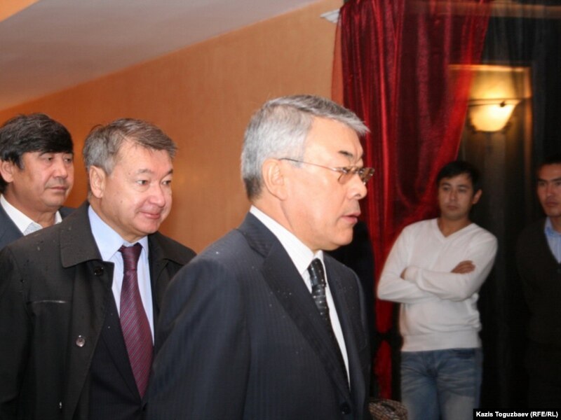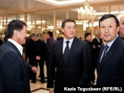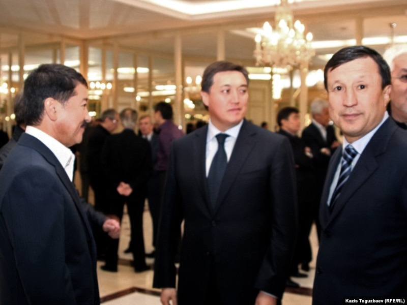 Солдан оңға: Болат Өтемұратов – Қазақстан президентінің бұрынғы іс басқарушысы, Асқар Мәмин – «Қазақстан темір жолы» компаниясының президенті, Әділбек Жақсыбеков – Қазақстан қорғаныс министрі марқұм Владимир Ниге арналып берілген қонақасы алдында. Алматы, 12 қыркүйек 2010 жыл.