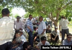 Қаражанбас мұнайшылары отбасымен бірге Ақтау қаласындағы Маңғыстау облысы әкімшілігі алдына жиналып тұр. Ақтау қаласы 2 маусым 2011 жыл.