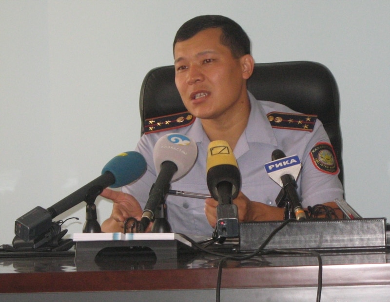 Ақтөбе облыстық ішкі істер департаменті баспасөз қызметінің жетекшісі Алмат Иманғалиев. Ақтөбе, 4 шілде 2011 жыл.