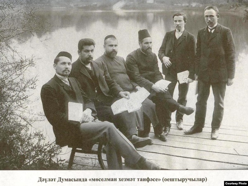 Ресей мемлекеттік думасының түркі-мұсылман мүшелері. Надир Девлеттің "Миллет Мажилис" кітабындағы сурет.